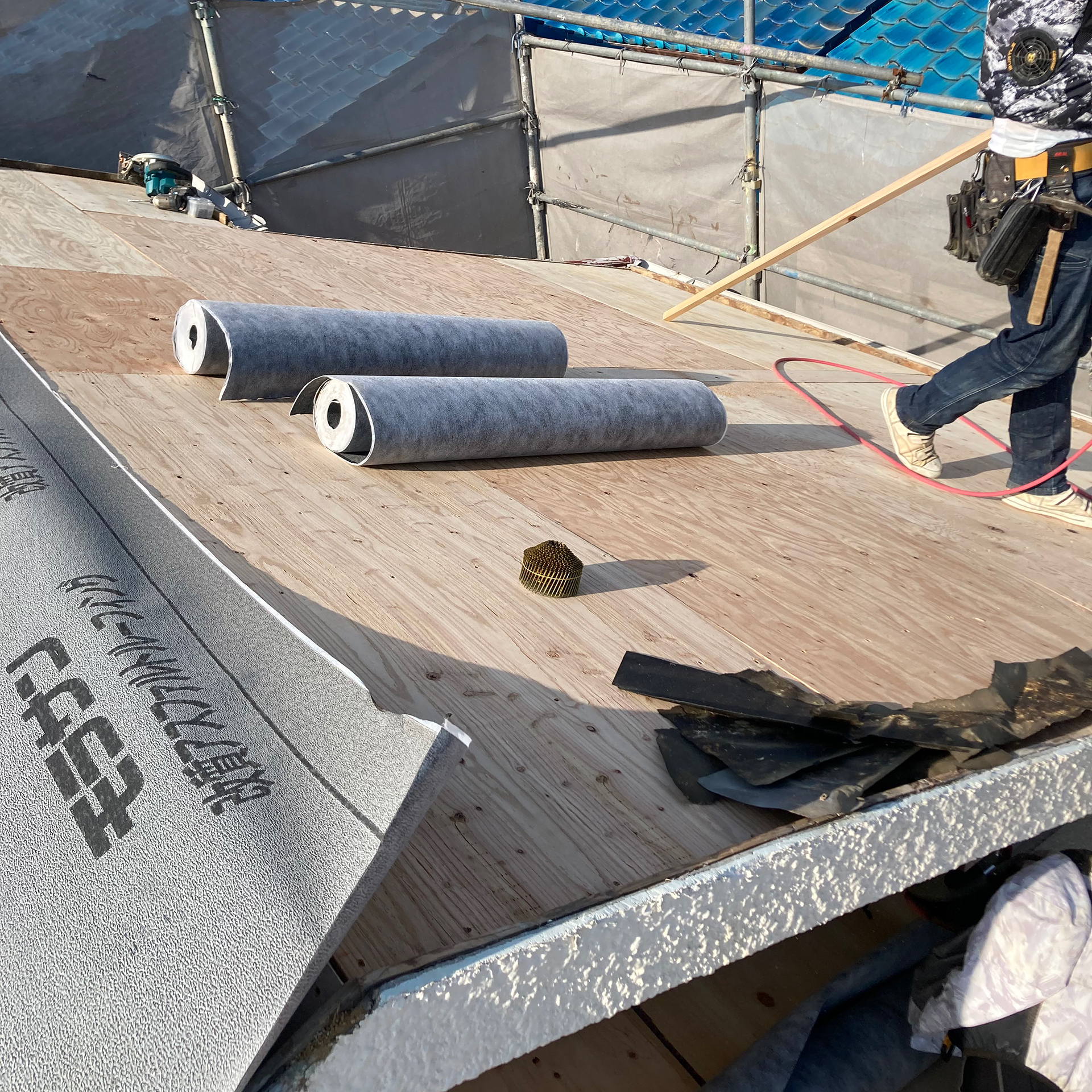 4.防水ルーフィングを張ります。